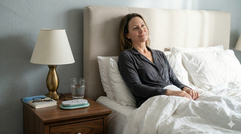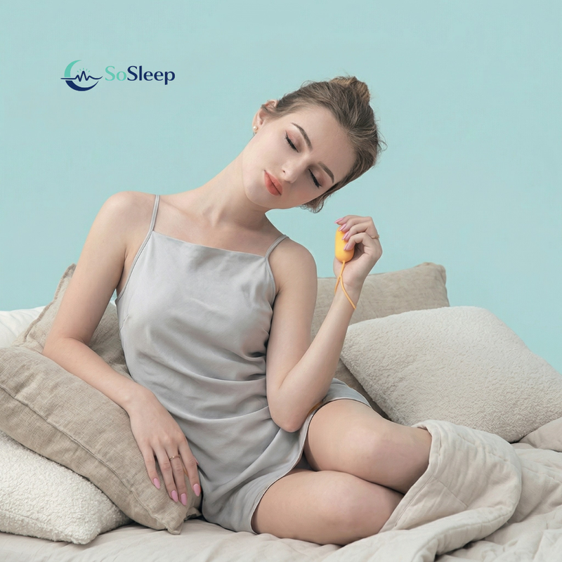 SoSleep uses gentle vibrations and calming light patterns to help signal your body that it's time to wind down, promoting natural relaxation and better sleep quality.